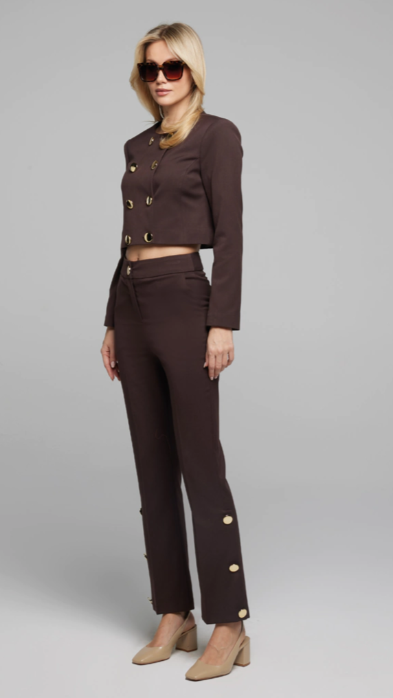 Giacca corta chiusa doppio petto , collo a giro , dettaglio bottoni oro sul davanti