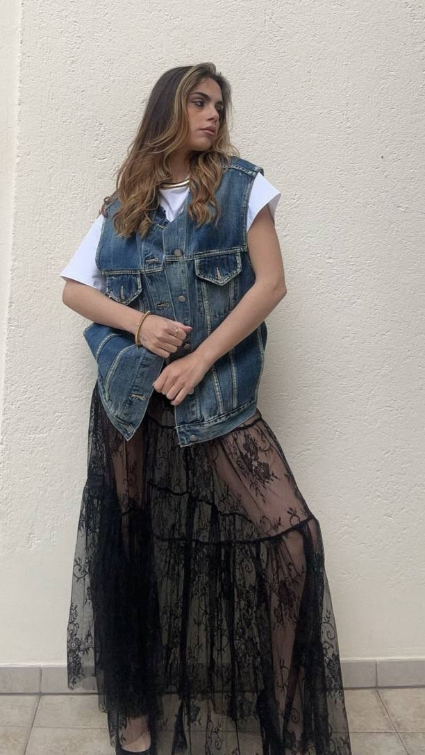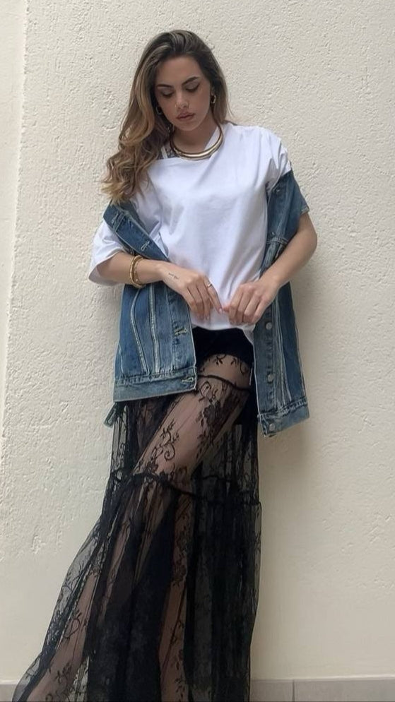 Gonna lunga in pizzo , elastico in vita ,porta in abbinato un boxer nero