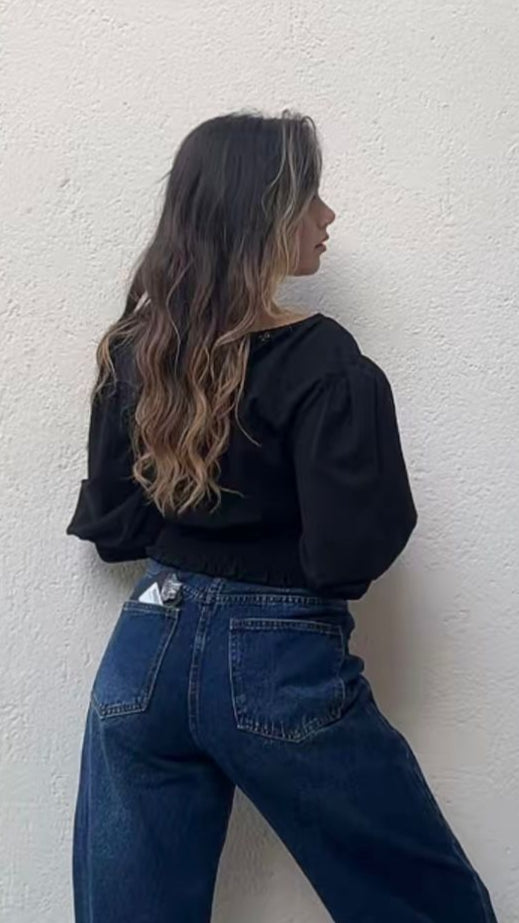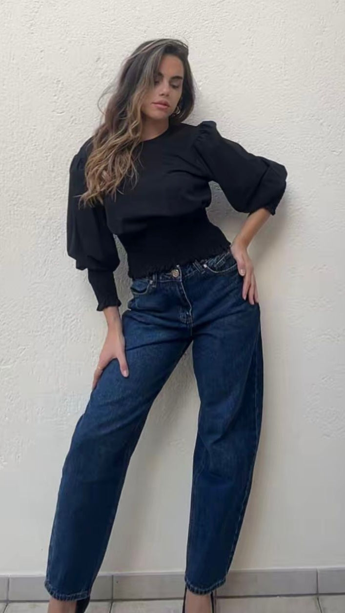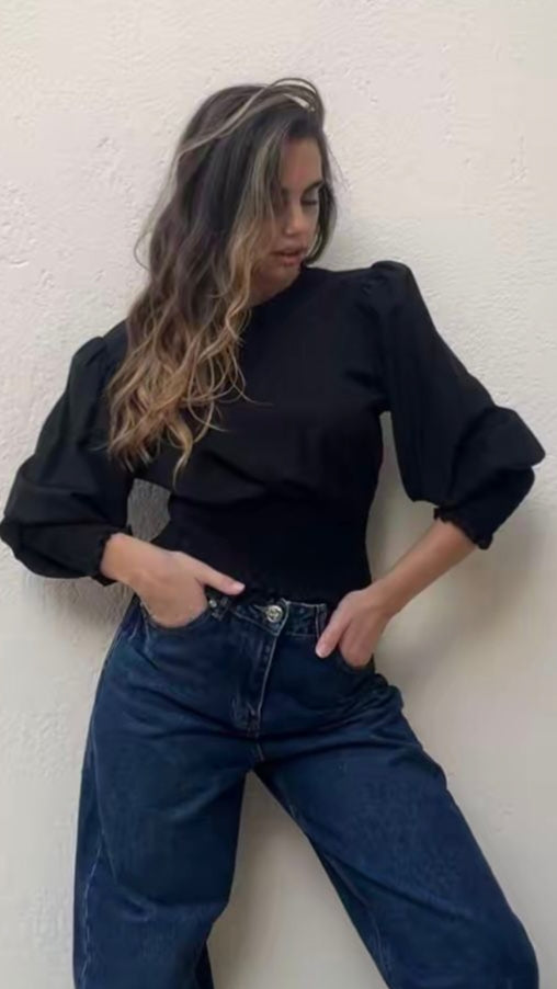 Maglia a girocollo, manica lunga con elastico sui polsi e sul fondo