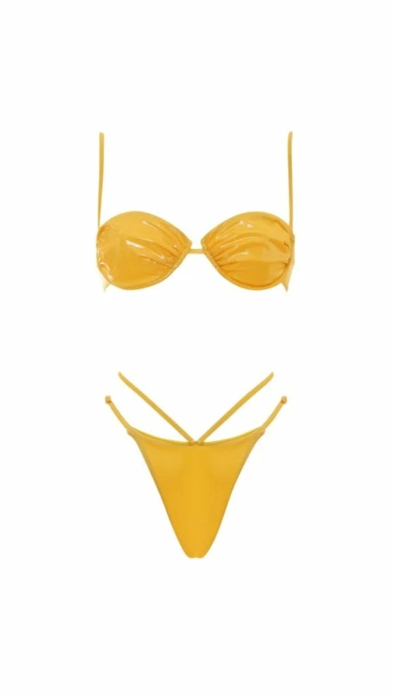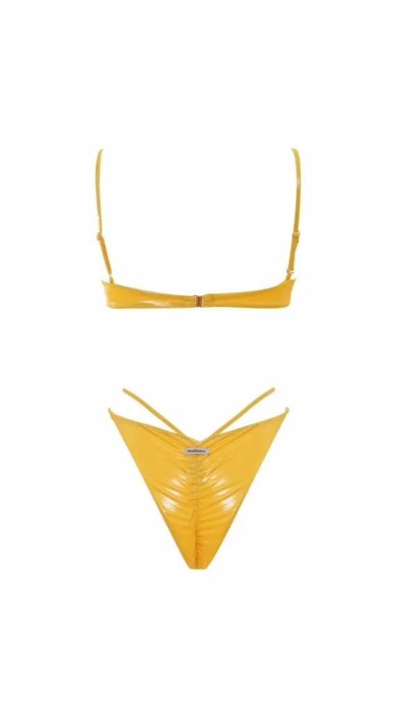 Marina è il bikini bestseller dell’estate, per uno stile impeccabile e luminoso. Combina un top dalla vestibilità slim, con ferretto senza imbottitura e bretelle regolabili e removibili, che ti permette di adattarlo alle tue necessità. E uno slip sgambato con arricciatura e doppio laccetto. La chiusura del top è con clip, sicura e comoda. In tinta unita, nella colorazione pesca. Realizzato in lamina, un materiale riflettente che aggiunge un tocco glamour ai costumi da bagno. Istruzioni per la cura: Lavare a mano in acqua fredda.