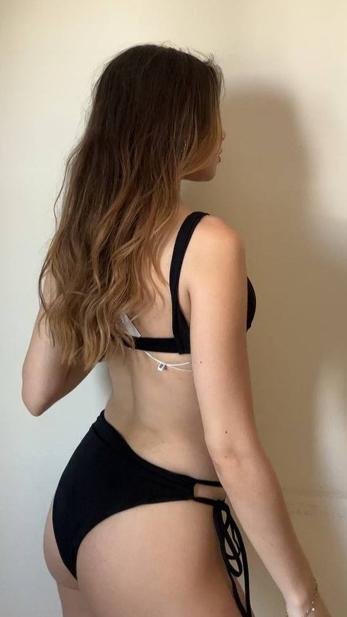 Paola è uno slip a vita media dotato di chiusura laterale con laccetti che lo rende particolare e cool. La chiusura è regolabile a piacimento. Completa il look con il topCarla. Realizzato in microfibra, un tessuto leggero e traspirante, che ne garantisce il massimo comfort. Sceglilo in tinta unita di colore nero per avere un grande classico da abbinare al tuo top preferito.